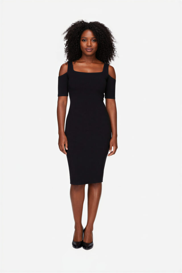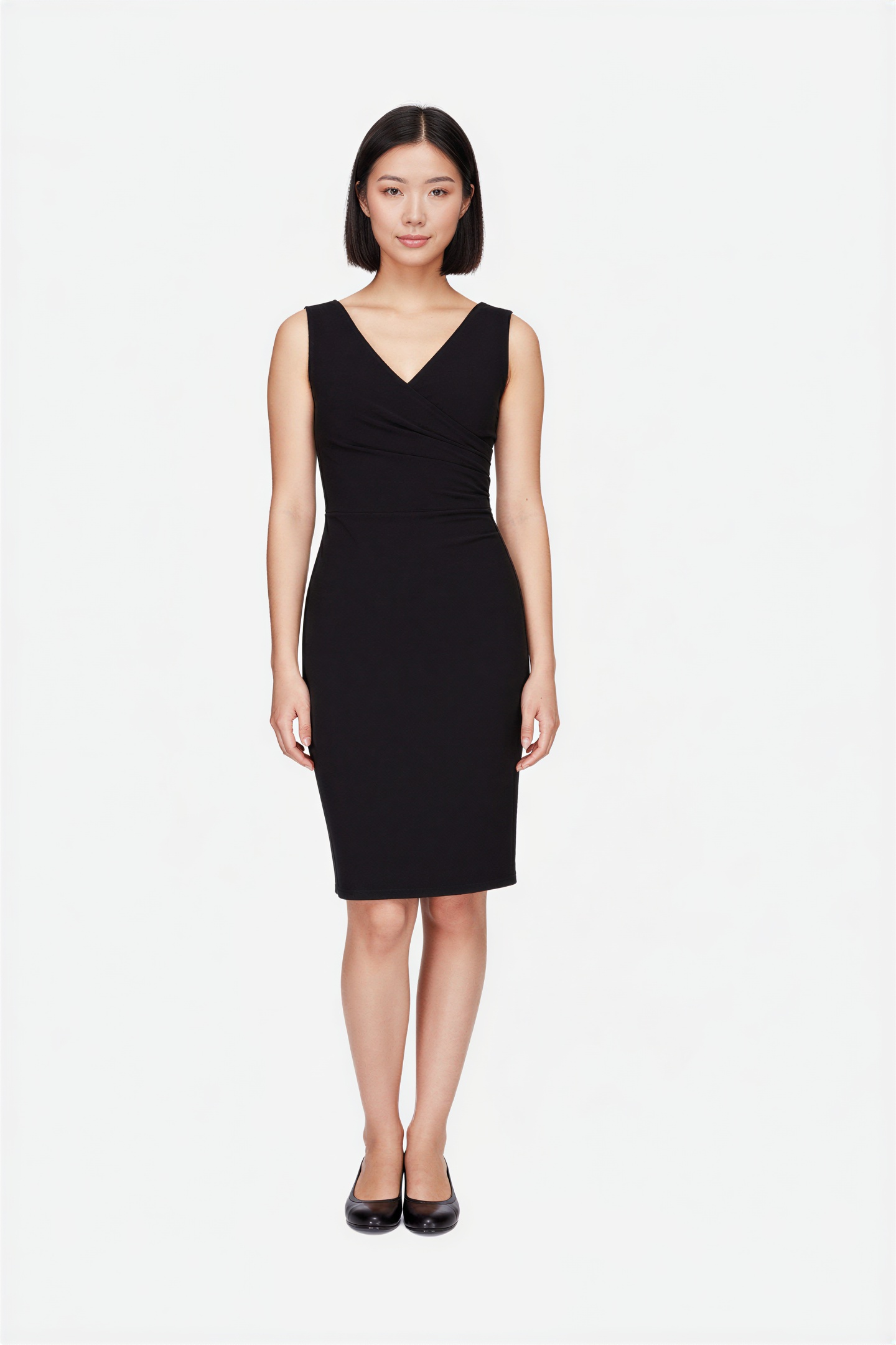 Robe encolure V profond et plissage aux côtés. 95% polyester/5% spandex